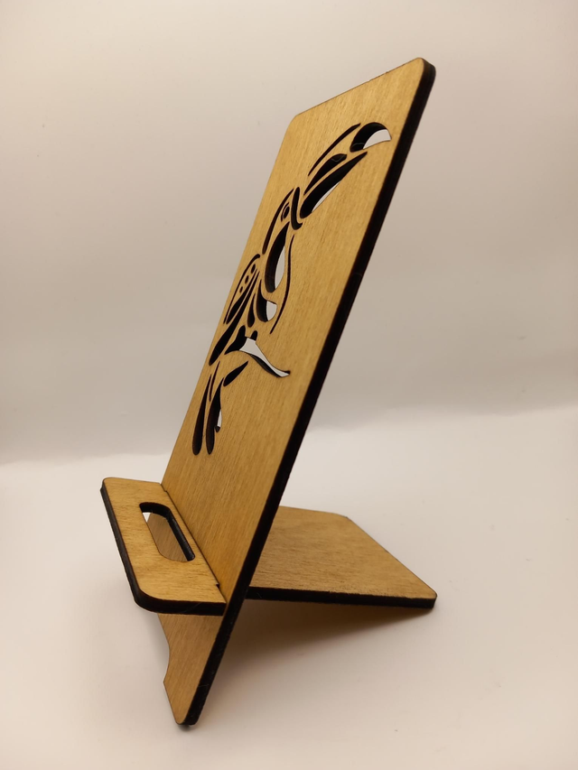Apportez une touche d’exotisme et d’élégance à votre quotidien avec ce support de téléphone en bois, fabriqué et verni à la main.